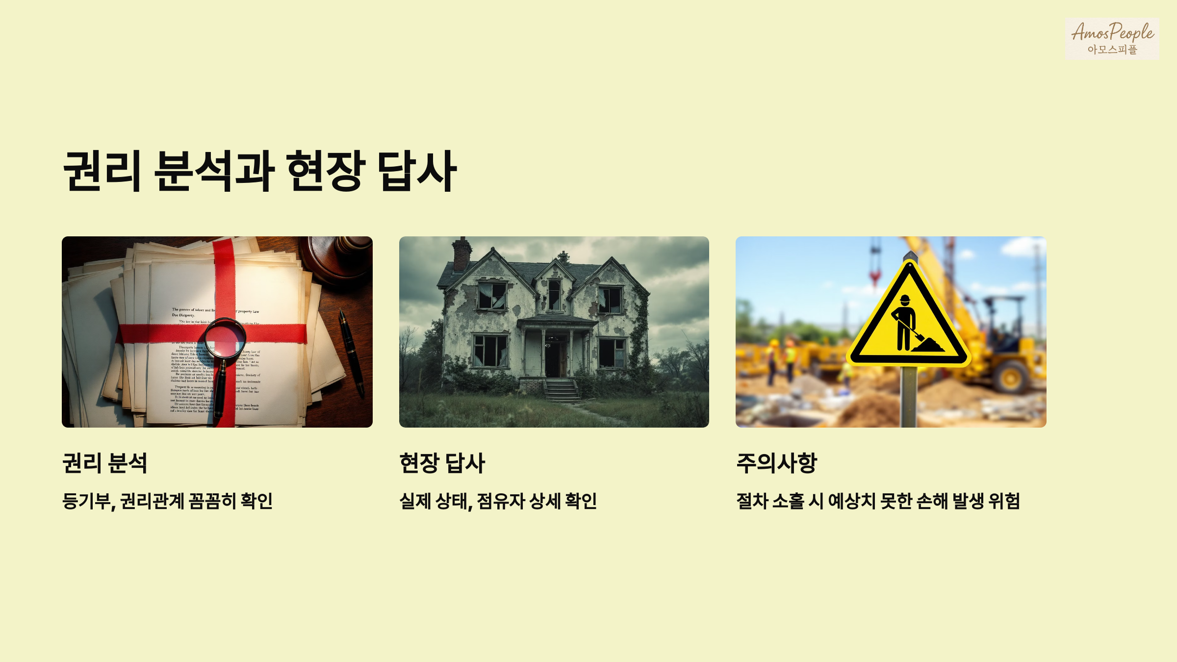 바로 ① 권리 분석과 ② 현장 답사입니다.