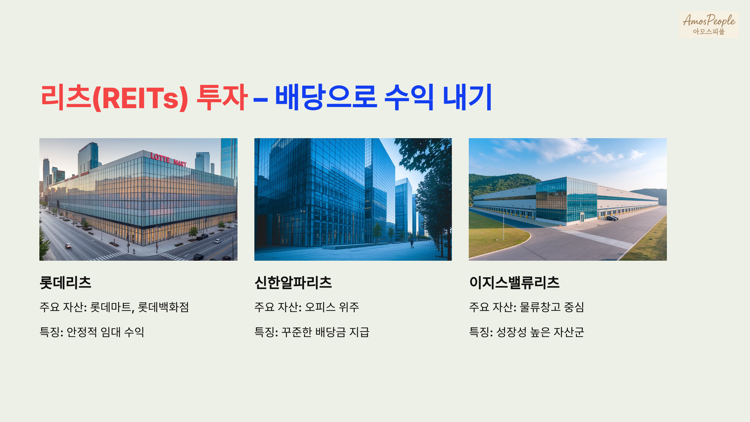 | 이지스밸류리츠 | 물류창고 중심 | 성장성 높은 자산군 |
