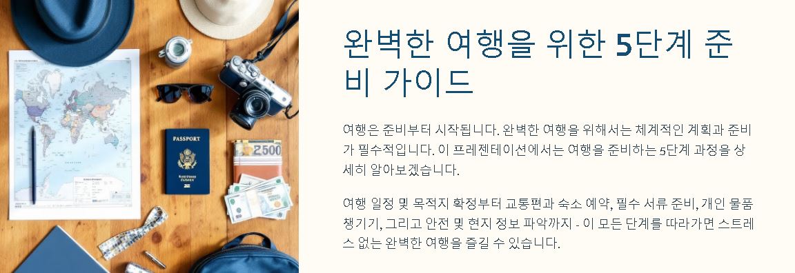 그래서 이번에는 여행 준비를 5단계로 나누어 구체적인 실천 방법을 소개합니다.