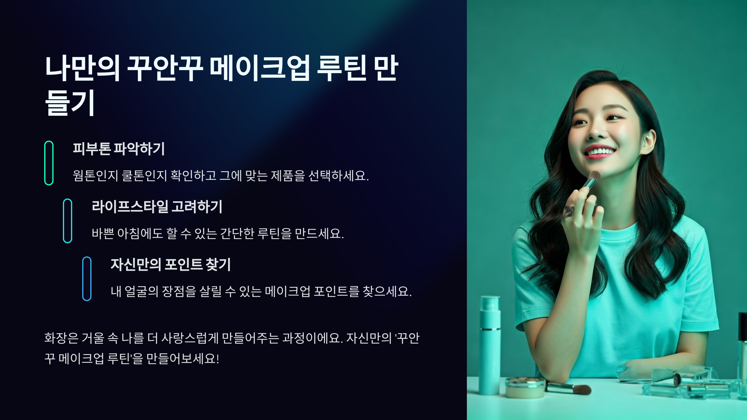 이번 글을 참고해서 자신만의 '꾸안꾸 메이크업 루틴'을 만들어보세요!